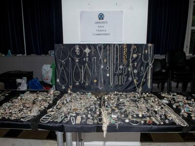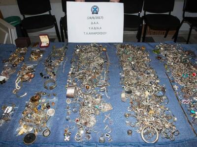 «Από την περασμένη Παρασκευή βρίσκονται στα χέρια της ΕΛ.ΑΣ πάνω από 700 κιλά χρυσαφικά και κοσμήματα, καθώς και άλλα τιμαλφή και κειμήλια, όπως πολύτιμοι λίθοι, συλλεκτικά νομίσματα, θρησκευτικές εικόνες και άλλα αντικείμενα, τα οποία ξεπερνούν σε αξία τα 10.000.000 ευρώ και προέρχονται από τη δράση του γνωστού εγκληματικού δικτύου», υπογράμμισε ο κ. Παπαζαφείρης, ενώ πρόσθεσε πως το σημαντικότερο γεγονός είναι ότι τα αντικείμενα αυτά θα επιστρέψουν και πάλι στα χέρια των ιδιοκτητών και των κατόχων τους.