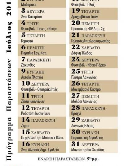 Αναλυτικά οι σταθμοί της περιοδείας τον Ιούλιο στη φωτ. παρακάτω: