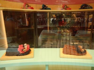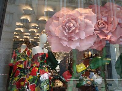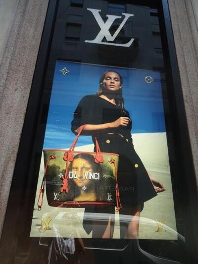 Δεν χάσαμε την ευκαιρία να φωτογραφίσουμε στους πιο πολυσύχναστους δρόμους τις βιτρίνες των «ναών» του luxury shopping. Οι καλοκαιρινές εκπτώσεις θα ξεκινούσαν Σάββατο και Δευτέρα, οπότε παρουσιάζονταν ήδη οι χειμερινές κολεξιόν. Εξαιρετικά δημοφιλείς στις πόζες των τουριστών ήταν αυτή τη φορά οι βιτρίνες Louis Vuitton καθώς με τη συμβολή του ζωγράφου Jeff Coons πάνω στις πολυπόθητες τσάντες απεικονίζονταν πασίγνωστοι πίνακες του μπαρόκ και της αναγέννησης με πιο αναγνωρίσιμη βέβαια τη Μόνα Λίζα. (Η τιμή σε σακίδια και shopping bags είναι 2400 ευρώ)