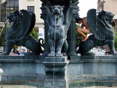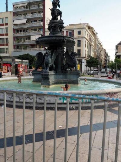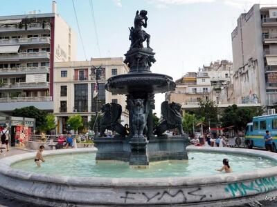 Συνηθισμένο φαινόμενο αποτελεί η αναζήτηση δροσιάς σε σιντριβάνια της Πάτρας και κυρίως σε αυτά της πλατείας Γεωργίου.