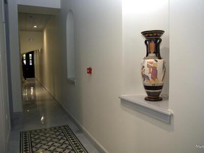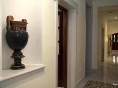 Στην είσοδο του σπιτιού μάς υποδέχθηκε ο κ. Μπακρώζης και αμέσως μάς οδήγησε στην μεγάλη αίθουσα του ισογείου. Εκεί θα βρίσκεται το εκθετήριο και ήδη ολοκληρώνονται οι εργασίες, ώστε να είναι έτοιμο στις 30 Ιουνίου.