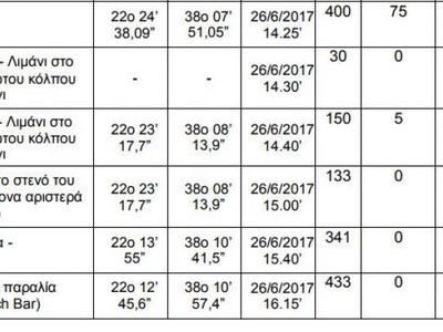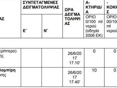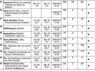 Πραγματοποιήθηκαν δειγματοληψίες θαλασσινού νερού στις 26 Ιουνίου 2017 σε παραλίες της Βόρειας Πελοποννήσου με τις παρακάτω συνθήκες: