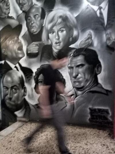 Άνδρας περπατά μπροστά από τοίχο με πορτραίτα ηθοποιών του παλιού ελληνικού κινηματογράφου σε δρόμο της Αθήνας την Τρίτη 4 Ιουλίου 2017. Πρόκειται για ένα γράφιτι πραγματικά ξεχωριστό
