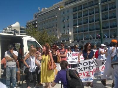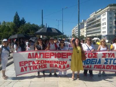 Κινητοποίηση στο κέντρο της Αθήνας πραγματοποίησαν σήμερα το πρωί οι εργαζόμενοι στο πρόγραμμα Βοήθεια στο Σπίτι από όλη την Ελλάδα. Ανάμεσα στους διαδηλωτές οι οι Πατρινοί εργαζόμενοι του προγράμματος μαζί με την πρόεδρο του Εργατικού Κέντρου Πάτρας Σταυρούλα Παναγοπούλου Νικολάου που στήριξε την κινητοποίηση, διεκδικώντας μαζί με τους εργαζόμενους την ικανοποίηση του πάγιου αιτήματός τους να δοθεί τέλος στην ομηρία των συμβασιούχων που πληρούν πάγιες και διαρκείς ανάγκες.