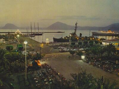 Τριων Συμμάχων... by night... Όταν οι καρέκλες της πλατείας εκτελούσαν χρέη κερκίδας για την πασαρέλα Αγ. Νικολάου - Μόλος... Στις αρχές της δεκαετίας του 1970...