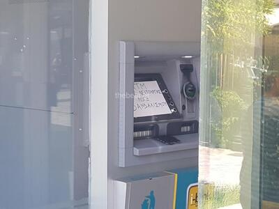 Πολίτες που πήγαιναν σήμερα το πρωί στο υποκατάστημα της Εθνικής τράπεζας στην πλατεία Τριών Συμμάχων δεν μπορούσαν να σηκώσουν χρήματα από τα αυτόματα τραπεζικά μηχανήματα ανάληψης.