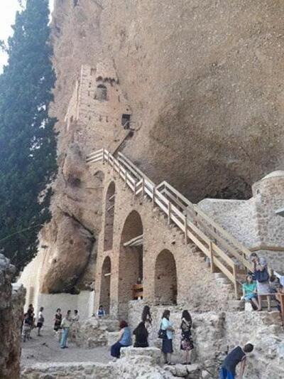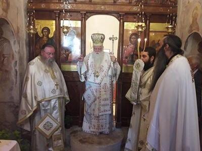 «Ο Κύριος Ιησούς Χριστός μάς προσκαλεί να συνάψουμε σχέση μαζί Του. Μία πνευματική, μία ερωτική σχέση. Μας ζητά η ψυχή μας να ενωθεί μαζί Του, να Τον κάνουμε Νυμφίο μας, να Τον κάνουμε ταίρι μας! Για να έρθετε σήμερα εδώ, σε αυτό το απόμακρο σημείο, σε αυτό το ασκητήριο, δεν υπάρχει κάτι υλικό που σας κάλεσε. Απλώς, ήρθατε σε έναν ιερό τόπο, που είναι κοπιαστικό για να ανεβεί κάποιος. Τι ήταν άραγε αυτό που σας έκανε να ανεβείτε, μικροί και μεγάλοι, εδώ; Ήταν μια γεύση εσωτερική που σας έδωσε τη δύναμη να φθάσετε εδώ. Ο Χριστός μίλησε στην καρδιά σας και σας έφερε εδώ πάνω για να μας πει ότι αυτή η μυστική σχέση μαζί Του δεν έχει τέρμα, διότι εδώ πάνω ήρθαν κάποιοι πριν από εμάς. Και πρώτος εξ αυτών ένας γόνος αρχοντικής οικογενείας, ο Άγιος Λεόντιος, που ήρθε και έμεινε σε αυτές τις τρύπες του βράχου. Τι ήταν αυτό που τον κράτησε και τους κράτησε εδώ πάνω; Αυτή η γλύκα του Ιησού, αυτή η παρουσία του Χριστού στην ψυχή και τη ζωή του. Όποιος νιώσει αυτή τη γλυκύτητα, αυτή τη μέθη, αρχίζει και πετά τα περιττά πράγματα, τα περιφρονεί και γίνεται πνευματικός άνθρωπος και καλός χριστιανός», ανέφερε ο σεπτός Ποιμενάρχης μας, κηρύσσοντας τον Θείο Λόγο.