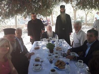 Αμέσως μετά την Απόλυση οι ιερομόναχοι, με άψογο «οικοδεσπότη» τον Καθηγούμενο της Ιεράς Μονής, Αρχιμανδρίτη π. Καλλίνικο Πουλή, έχοντας στο πλευρό τους εθελοντές και εθελόντριες, προσέφεραν καφέ, αναψυκτικά και λουκούμια στους προσκυνητές, κάτω από τα δροσερά πλατάνια στον προαύλιο χώρο τού μοναστηριού, ενώ το μεσημέρι το Ηγουμενοσυμβούλιο παρέθεσε γεύμα, στο οποίο παρακάθισαν ο τοπικός Ποιμενάρχης αλλά και οι προσκεκλημένοι.