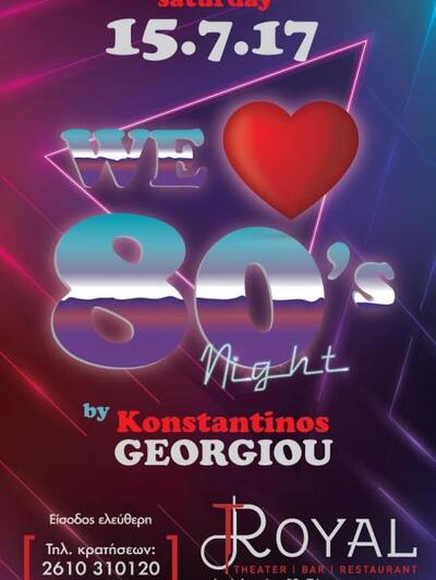 Έχοντας πίσω του πάνω από μια δεκαετία επιτυχίας, σε ιστορικούς χώρους της Πάτρας, το Σάββατο 15 Ιουλίου, το κλασσικό party “We love 80s” έρχεται στον Κήπο του Royal, στην Ακτή Δυμαίων.