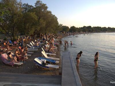Από τις πιο κοντινές επιλογές αυτή της πλαζ. Παρά τις τσούχτρες που είχαν καθημερινή παρουσία στην περιοχή, πολλοι, κάθε ηλικίας, που δεν είχαν κι άλλη επιλογή μιας και δεν μπορούσαν να φύγουν πιο μακριά απο την πόλη, πήραν τις καρεκλιτσες και τις πετσέτες τους, φόρεσαν τα μαγιό τους και δροσίστηκαν με τα ελάχιστα μποφόρ που "έφερνε" ο Πατραϊκός.