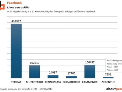 Οι διακυμάνσεις στη δημοφιλία και τη δραστηριότητα των λογαριασμών κομμάτων και πολιτικών ηγετών στο Facebook και στο Twitter, καταγράφονται σε ετήσια μελέτη της εταιρείας. Η μελέτη βασίζεται σε στοιχεία του περασμένου Ιουνίου, και περιλαμβάνει συγκρίσεις με τις αντίστοιχες περσινές επιδόσεις τους.