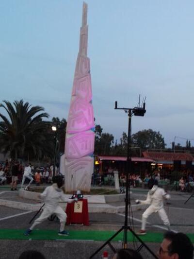 Για δεύτερη χρονιά οι κάτοικοι της περιοχής και πολλοί καλεσμένοι είχαν την ευκαιρία να παρακολουθήσουν στην πλατεία Σαρανταπηχιωτίκων ένα μοναδικό θέαμα, στο οποίο έλαβαν μέρος συνολικά 40 αθλητές σωματείων της Ελλάδας. Έδωσαν το παρόν και συναγωνίστηκαν ο Αχαϊκός Σύλλογος Ξιφασκίας «Μέγας Αλέξανδρος», ο Α.Σ. Ξιφασκίας Κορινθίας «Σπάρτακος», ο Ο.ΞΙΦ. Γλυφάδας, ο Α.Σ. ΙΡΙΔΑ (Αθήνα), Α.Σ. ΒΙΚΤΩΡΙΑ (Αθήνα).