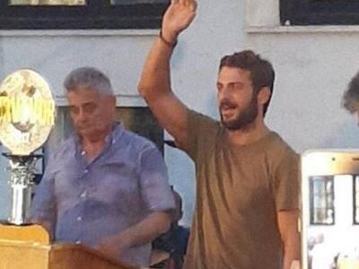 Ο Γιώργος Αγγελόπουλος επέστρεψε στη Σκιάθο και αρκετός κόσμος συγκεντρώθηκε στο ανοικτό θέατρο Μπούρτζι για να τον υποδεχθεί.