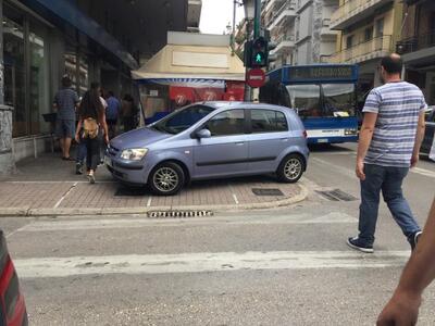Δυστυχώς μετά το διπλοπαρκάρισμα και τη στάθμευση σε θέσεις ΑΜΕΑ τώρα κάποιοι ασυνείδητοι οδηγοί ξεκίνησαν να παρκάρουν και στα πεζοδρόμια.