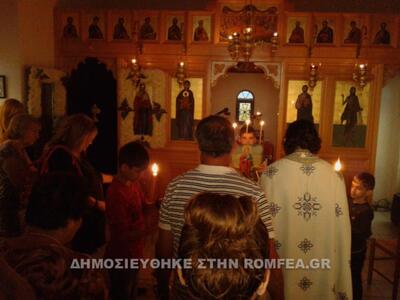 Με κατάνυξη και εν μέσω καταιγίδας και κεραυνών πραγματοποιήθηκε ο πανηγυρικός εσπερινός της Αγίας Μαρίνας στο ομώνυμο εκκλησάκι της λίγο έξω από το Μεσολόγγι, στα Ρέτσινα.