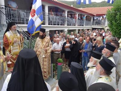 Ἀνήμερα, 17.7.2017, ἐτελέσθη ἡ Θεία Λειτουργία, ὑπό τοῦ Θεοφιλεστάτου Ἐπισκόπου Κερνίτσης κ. Χρυσάνθου, ὁ ὁποῖος ἐκήρυξε τόν θεῖο λόγο".