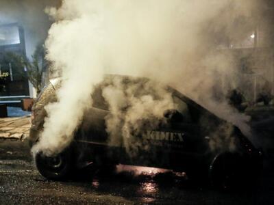 Λίγο αργότερα, μία μολότοφ έπεσε πάνω σε ένα παρκαρισμένο αμάξι στην οδό Κωλέττη με αποτέλεσμα εκείνο να γίνει αμέσως παρανάλωμα του πυρός.