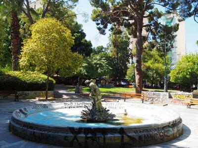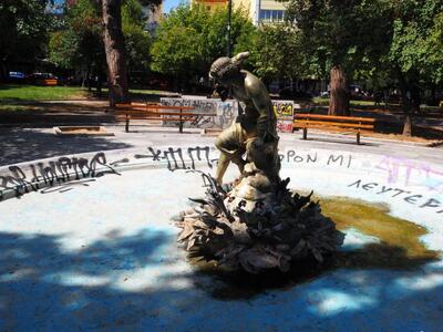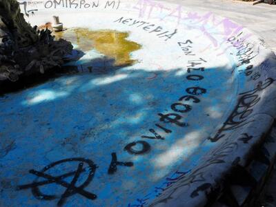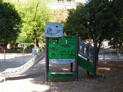 Τις τελευταίες ημέρες, το συντριβάνι και η κατασκευή της παιδικής χαράς έχουν εγκαταλειφθεί στην τύχη τους.