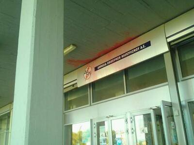 Μέλη της αναρχικής ομάδας “δυσήνιος ίππος” πέταξαν μπογιές στο κεντρικό κτίριο της ΔΕΗ στην Πάτρα, στην παραλιακή λεωφόρο Ακτή Δυμαίων, το βράδυ της Πέμπτης. Με τον τρόπο αυτό θέλησαν να διαμαρτυρηθούν για την επικείμενη λειτουργία του φράγματος της ΔΕΗ στη Μεσοχώρα.