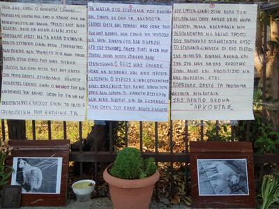 Απέναντι από το σχολικό συγκρότημα και μπροστά από τις καπναποθήκες Παπαπέτρου, οι διερχόμενοι θα συναντήσουν τις φωτογραφίες ενός σκύλου που δηλητηριάστηκε πριν από λίγες ημέρες στο συγκεκριμένο σημείο, κεράκια και ένα κείμενο, σαν αυτό που θα έγραφε ο «‘Άρχοντας» , ο σκύλος που φόλιασαν άγνωστοι, αν είχε ανθρώπινη μιλιά.