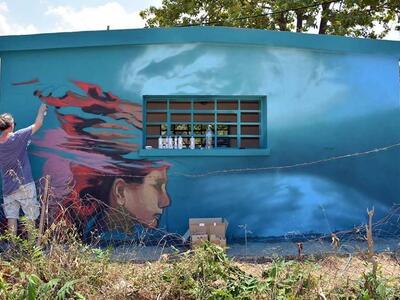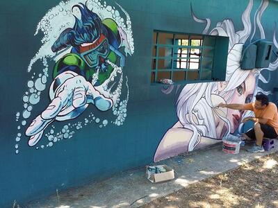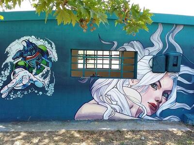 Αυτή η ιστορική διαδρομή του ενεργού ακόμη αντλιοστασίου, συγκίνησε τους καλλιτέχνες KLE και DEMIAN αναλαμβάνοντας έτσι την μεταμόρφωσή του. Πραγματοποίησαν μία εικαστική παρέμβαση βασισμένη στην street art, εμπνεόμενοι από το στοιχείο του νερού και σε πρωτοβουλία της Art in Progress.