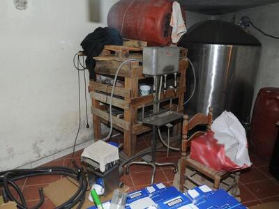Εκτός από την λαθραία αιθυλική αλκοόλη κατασχέθηκαν ο εξοπλισμός για εμφιάλωση, τυποποίηση των ποτών, δεξαμενές, 5.267 φιάλες με διάφορα ποτά και περίπου 8.000 κενές, 75.975 ευρώ, πλαστές ετικέτες, δύο φορτηγά, ένα αλεξίσφαιρο γιλέκο και πολλά άλλα πειστήρια.