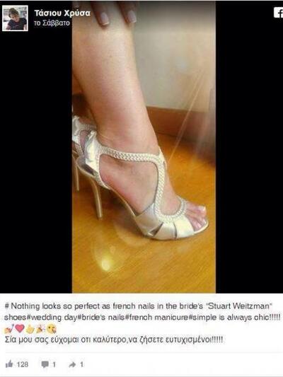 «Τίποτα δεν δείχνει πιο άψογο, από το γαλλικό μανικιούρ σε ένα νυφικό παπούτσι Stuart Weirtzman. Σία μου σας εύχομαι ό,τι καλύτερο. Να ζήσετε ευτυχισμένοι».
