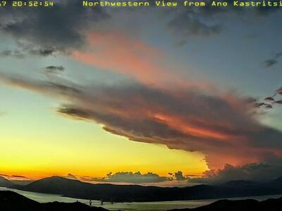 Το πλάνο είναι από την κάμερα του μετεωρολογικού σταθμού στο Άνω Καστρίτσι λίγο μετά το ηλιοβασίλεμα όπου ένα νέφος (Cb) cumulonimbus χρωματιζεται από το φως του δύοντος ηλίου!!