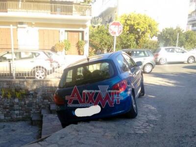Έτσι ο οδηγός ενός αυτοκινήτου έχασε τον έλεγχο και εξετράπη της πορείας τουμε αποτέλεσμα να σκαλώσει πάνω στο πλακόστρωτο πρώτο σκαλοπάτι.