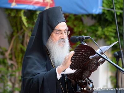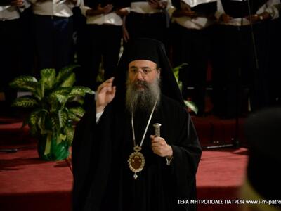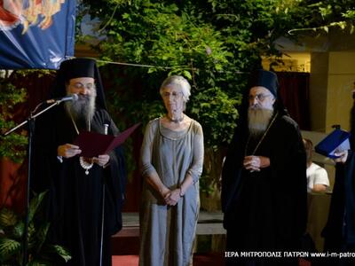 Ἐν συνεχείᾳ, τὸν λόγο ἔλαβε ὁ Σεβασμιώτατος Μητροπολίτης Πατρῶν κ.κ. Χρυσόστομος, ὁ ὁποῖος ἦτο ὁ κεντρικὸς ὁμιλητής τῆς Ἐκδηλώσεως.