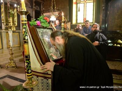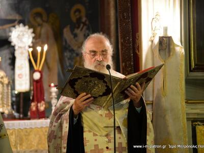 Τὴν ἀκολουθία τῆς Ἱερᾶς Παρακλήσεως πρὸς τὴν Ὑπεραγία Θεοτόκο ἐτέλεσε τὴν Τρίτη 1.8.2017, ὁ Σεβασμιώτατος Μητροπολίτης Πατρῶν κ.κ. Χρυσόστομος, στὴν Ἱερὰ Μονὴ Παναγίας Γηροκομητίσσης Πατρῶν, ἐν πληθούσῃ Ἐκκλησίᾳ.