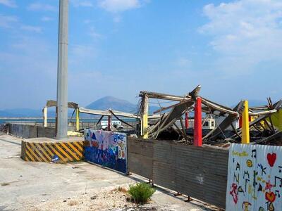 Περιφράχθηκαν με ψηλά πάνελ τα μπάζα από το στέγαστρο που κατέρρευσε την Παρασκευή παρασύροντας στο θάνατο έναν νεαρό Αλγερινό στο παλιό λιμάνι της Πάτρας. Επισης τα συνεργεία προχώρησαν σε διακοπή της παροχής ρεύματος και νερού. Το χώρο επιτηρεί η αστυνομία και το λιμενικό ώστε να αποτραπεί τυχόν προσπάθεια εισόδου. Ο χώρος θα σκεπαστεί πιθανότατα στη διάρκεια της ημέρας για να μην παραμείνουν εκτεθειμένα τα θραυσματα της οροφής που περιείχαν αμιαντο.