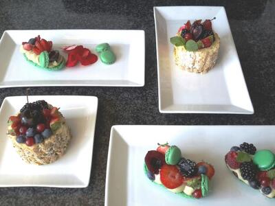 Σήμερα σας παρουσιάζω δύο από τις πιο κλασικές Γαλλικές συνταγές, μια Charlotte με μπαβαρουάζ φιστίκι και ταρλέτες με ποσαρισμένα ροδάκινα.