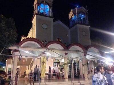 Το βράδυ της παραμονής της εορτής της Κοίμησης της Θεοτόκου τελέστηκε α΄ Θεία λειτουργία – μικρά αγρυπνία από ώρας 9.45 μ.μ. έως 1 μετά τα μεσάνυχτα. Ιερούργησε ο Αιδεσιμολογιώτατος Πρωτοπρεσβύτερος π. Χαράλαμπος Παπαδόπουλος. (Δείτε φωτο)