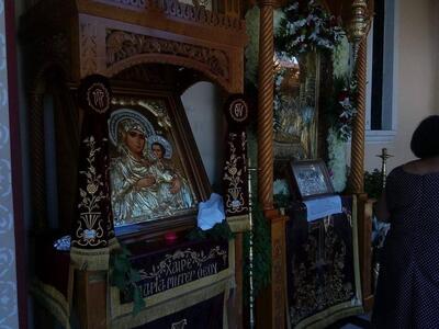 Ο Ιερός Ναός Κοιμήσεως της Θεοτόκου στην Οβρυά τίμησε χθες και σήμερα την Παναγία. Τη Δευτέρα 14 Αυγούστου το πρωί τελέστηκε Θεία Λειτουργία και έγινε η Έξοδος της Ιεράς Εικόνας της Κοιμήσεως της Υπεραγίας Θεοτόκου και τοποθέτηση αυτής στα προπύλαια του Ναού.