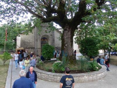 Στο λόγο του,ο καθηγούμενος της Ι.Μ. π.Πολύκαρπος αναφέρθηκε στον ρόλο και την ιδιαίτερη θέση που κατέχει η Παναγία μας,ενώ δεν παρέλειψε να κάνει ιδιαίτερη αναφορά στον Αγ.Νικόδημο τον Αγιορείτη και το βιβλίο του «Αόρατος Πόλεμος» ο Άγιος Νικόδημος έγραψε ότι η Παναγία αποτελεί «μεθόριον αναμεταξύ της ακτίστου και κτιστής φύσεως αύτη μόνη είναι Θεός άμεσος μετά τον Θεόν και έχει τα δευτερεία της Αγίας Τριάδος, ως ούσα μήτηρ αληθώς του Θεού».