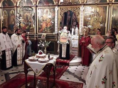 Οι πανηγυρικές και λατρευτικές εκδηλώσεις κορυφώθηκαν σήμερα με λαμπρή Αρχιερατική Θεία Λειτουργία, της οποίας προεξήρχε ο Σεβασμιώτατος Μητροπολίτης Βρεσθένης κ. Θεόκλητος, με τους πιστούς τής Αιγιάλειας (και όχι μόνο) να κατακλύζουν τον Ιερό Ναό και τον αύλειο χώρο του.