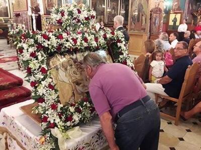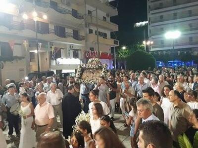 Χθες, παραμονή της εορτής, τελέστηκε μέγας πανηγυρικός Εσπερινός μετ’ αρτοκλασίας, προεξάρχοντος του Πανοσιολογιώτατου Αρχιμανδρίτη π. Ιωακείμ Βενιανάκη, Πρωτοσύγκελου της Ιεράς Μητροπόλεως Καλαβρύτων και Αιγιαλείας. Τον Θείο Λόγο κήρυξε ο Αρχιμανδρίτης π. Λεόντιος Πετρίδης, ο οποίος ομίλησε θεολογικώς περί της μεταστάσεως της Κυρίας Θεοτόκου εις τους Ουρανούς. «Η Παναγία μας είναι η πύλη, διά της οποίας ΄΄εσκήνωσεν εν ημίν΄΄ και ενήργησε το έργο της σωτηρίας. Είναι η πύλη, διά της οποίας οι πιστοί γινόμαστε κοινωνοί του Θεού, είναι η διασώζουσα και μεσιτεύουσα για το ανθρώπινο γένος. Με τη ζωή Της αλλά και με την Κοίμησή Της η Υπεραγία Θεοτόκος έγινε η αιτία να ανοίξει για εμάς η πύλη του Παραδείσου, προσφέροντάς μας μια ακόμα θεία απόδειξη. Πως, όταν κατορθώσουμε στα μέτρα τής προσωπικής αδυναμίας να ενωθούμε με την όντως ζωή, δηλαδή με τον ίδιο τον Θεό, τότε όχι μόνο γινόμαστε μέτοχοι της ζωής, όχι μόνο δεν πρόκειται να γευτούμε τον πνευματικό θάνατο, αλλά και αυτή η σωματική νέκρωση αποτελεί σημείο θριάμβου και όχι λύπης», σημείωσε μεταξύ άλλων ο Αρχιμανδρίτης, καλώντας τους πιστούς να εισέλθουν στη ζωή της ταπείνωσης, της αγάπης και της καρτερίας, σύμφωνα με το παράδειγμα της ίδιας της Παναγίας μας.