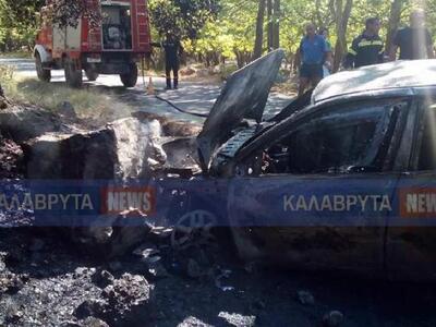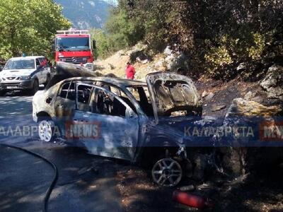 Πυρκαγιά εκδηλώθηκε πριν από λίγη ώρα σε Ι.Χ. αυτοκίνητοι στην περιοχή Μάζι Κλειτορίας Καλαβρύτων. Η αιτία μέχρ στιγμής παραμένει άγνωστη. Το όχημα καταστράφηκε ολοσχερώς. Αρχικά προσέκρουσε σε βράχο και έπειτα τυλίχθηκε στις φλόγες.