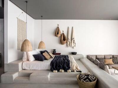 Σύμφωνα με την εταιρία, ο σχεδιασμός επηρεάστηκε από τα κυβιστικά κτίρια στο νησί, ενώ η επίπλωση από τις καθαρές γραμμές του μοντερνισμού στα μέσα του αιώνα, σε αντίθεση με την άγρια και φυσική υφή και τα εξωτικά χειροποίητα αξεσουάρ.
