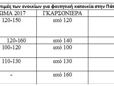 Σύμφωνα με το δίκτυο κτηματομεσιτικών υπηρεσιών της E- Real Estates η ενοικίαση γκαρσονιέρας στην Πάτρα ξεκινά από 100 ευρώ, ενώ το δυάρι από 150.