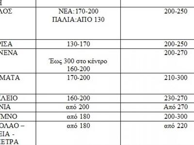 Ακολουθούν αναλυτικοί πίνακες με τις τιμές ανά περιοχή.
