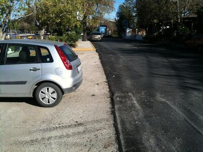 Εικόνα δημοσίου έργου για γέλια και για κλάματα. Πέρασαν νέο ασφαλτοτάπητα, στην παραλιακή οδό του Ακταίου, αλλά άφησαν εκτός ένα μεγάλο μέρος του δρόμου που ως εσοχή χρησιμεύει για την στάθμευση αυτοκινήτων.
