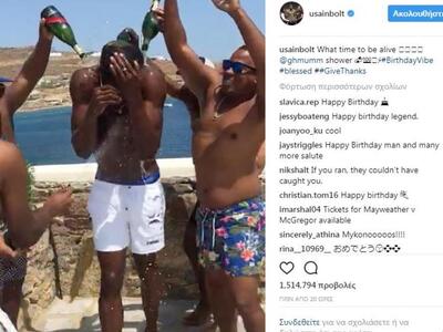 Στην Μύκονο βρίσκεται από το περασμένο Σάββατο ο Γιουσέιν Μπολτ ο «άνθρωπος αστραπή» και διασκεδάζει με την παρέα του.