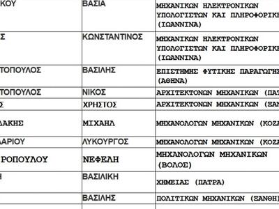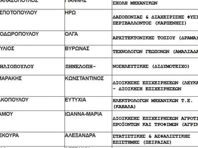 Δείτε αναλυτικά τη λίστα των επιτυχόντων: