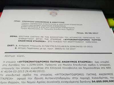Θετική εξέλιξη για τον Αυτοκινητοδρόμιο της Πάτρας εκτιμάται η παράταση που δόθηκε για το χρονικό περιθώριο του Αναπτυξιακού Νόμου και η εξασφάλιση όπως όλα δείχνουν, της απαραίτητης δανειοδότησης από τράπεζα του εξωτερικού. Τελικός στόχος είναι η ανεύρεση νέου επενδυτή, κάτι το οποίο είναι σε καλό δρόμο, καθώς υπάρχουν εταιρείες που έχουν εκδηλώσει το ενδιαφέρον τους.