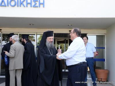 ●Μετά τό πέρας τῆς Θείας Λειτουργίας στό Γραφεῖο τῆς Διοικήσεως προσεφέρθη κέρασμα, ὅπου ὁ Σεβασμιώτατος συνομίλησε μέ τόν κ. Διοικητή γιά θέματα κοινοῦ ἐνδιαφέροντος καί γιά τήν περαιτέρω συνεργασία τῆς Ἱερᾶς Μητροπόλεως καί τῆς Διοικήσεως τοῦ Νοσοκομείου πάνω σὲ θέματα ὑγείας καὶ προσφορᾶς ἀγάπης πρός τόν πάσχοντα συνάνθρωπο, ἀλλά καί σέ γενικώτερα κοινωνικά ζητήματα.