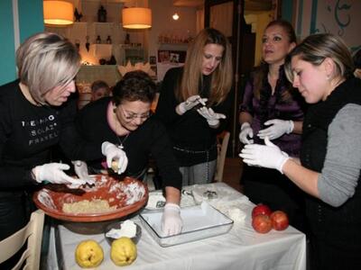 'Ετσι λοιπόν σ' ένα ζεστό περιβάλλον πανέμορφα διακοσμημένο, οι παρευρισκόμενες έπλασαν παραδοσιακά κουραμπιέδες, γέλασαν, δοκίμασαν την πορτοκαλόπιττα και τα άλλα κεράσματα του μαγαζιού και ήπιαν τεντούρα και λικέρ. Η όλη εικόνα θύμιζε κάποιες παλιές, αγνές, καλές εποχές όπου μαζεύονταν οι γυναίκες για να φτιάξουν τα γλυκά του σπιτιού για τα Χριστούγεννα.'Ηταν μια όμορφη ιδέα στο πνεύμα των ημερών, όπου σκοπός είναι να έρθουν οι άνθρωποι πιο κοντά. Τόσο απλό όμως τόσο σημαντικό!