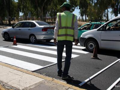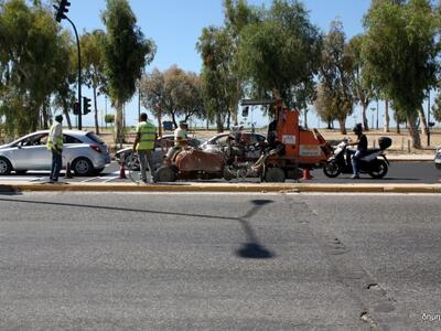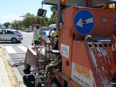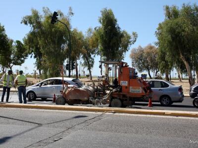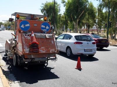 Εργασίες διαγράμμισης πραγματοποιήθηκαν το μεσημέρι στην Ακτή Δυμαίων και την ώρα αιχμής όσον αφορά στην κυκλοφορία, προκλήθηκε μποτιλιάρισμα.