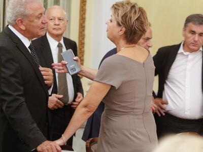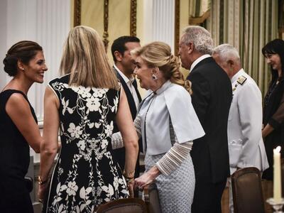Εντυπωσιακή η παρουσία της Μαριάννας Βαρδινογιάννη, ενώ σε πιο ... διακριτικούς ρυθμούς οι υπόλοιπες κυρίες που παρέστησαν στο επίσημο δείπνο.